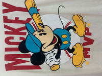 Mickey Mouse MVP Baseball Big Print Size on tag : no size on tag Brand : Bros Armpit to armpit : 20" Top to bottom : 28" Material : 100% cotton Colour : cream Condition : GOOD CONDITION Stich: all double