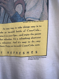 Vintage 1995 Coca Cola Tee Size on tag : tag missing Brand : Coca Cola Armpit to armpit : 22.5" Top to bottom : 28" Material : 100% Cotton Colour : White Condition : GOOD CONDITION Stich: all single