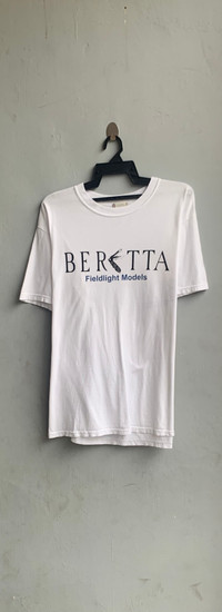 Vintage 90’ BERETTA FIREARMS Logo Tee Size on tag : faded Tag Brand : beretta Armpit to armpit : 21.5" Top to bottom : 29" Material : 100% Cotton Colour : White Condition : GOOD CONDITION Stich: all double