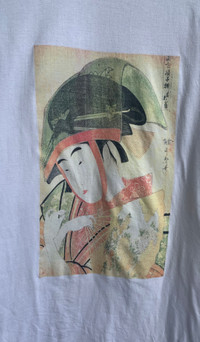 Vintage Geisha Photo Art Tee Size on tag : no size on tag Brand : japanese brand Armpit to armpit 20.5" Top to bottom : 30.5" Material : 100% Cotton Colour : White Condition : GOOD CONDITION Stich: all single