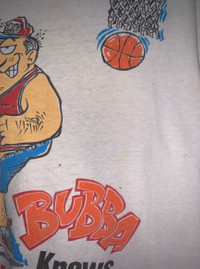 Vintage Hugger Bubba Knows Basketball Coach School Tee Size on tag : L Brand : hugger Armpit to armpit : 23" Top to bottom : 27" Material : 100% cotton Colour : cream/ light yellow Condition : GOOD CONDITION (many minor defect refer pic) Stich: all double