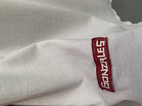 Vintage Mark Gonzalez 3 Quater Tee Size on tag : XL Brand : Mark Gonzales Armpit to armpit : 22" Top to bottom : 29" Material : 100% Cotton Colour : White/Black Condition : GOOD CONDITION (have stain) Stich: all double