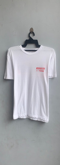 Vintage Pirelli Alfa Romeo Tee Size on tag : faded tag Brand : Pirelli Armpit to armpit : 19" Top to bottom : 26" Material : 100% Cotton Colour : White Condition : GOOD CONDITION Stich: all single