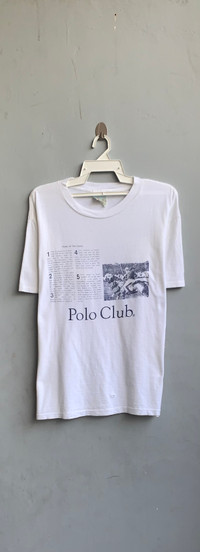 Vintage Polo Club Rule Tee Size on tag : no size on tag Brand : Polo Club Armpit to armpit : 23.5" Top to bottom : 27" Material : 100% Cotton Colour : White Condition : GOOD CONDITION Stich: all single