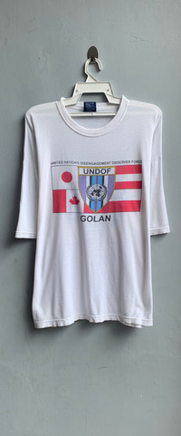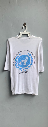 Vintage United Nations Disengagement Observer Force Tee Size on tag : XL Brand : Teams Armpit to armpit : 25" Top to bottom : 29" Material : 100% Cotton Colour : White Condition : GOOD CONDITION Stich: all double