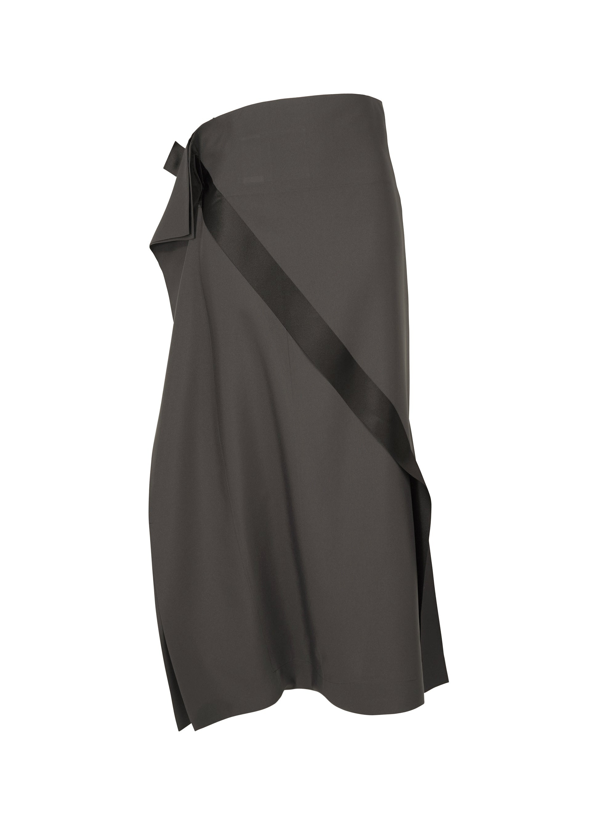 These pants feature a bold design with diagonal tape-like strips of fabric on the main quadrilateral fabric. The structure has draping created by the tape-like strips that run across the body when worn. Product Information Material: 100% Polyester Tape: 100% Polyester Made in Japan Waist specifications:Integrated belt Slit (position):right