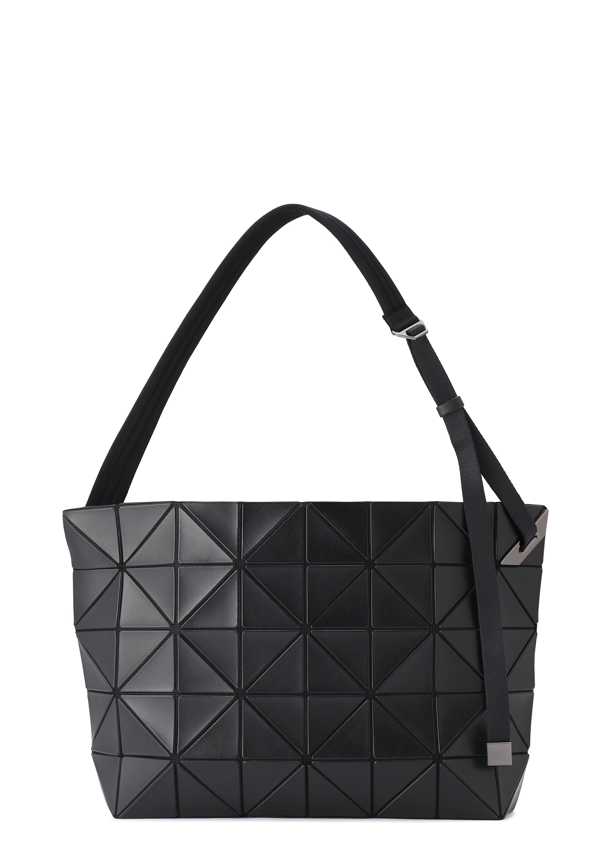 This shoulder bag is characterized by its dynamic, three-dimensional look, made from leather-like matte material and composed of large triangular pieces. It can be hung from one shoulder or across the body by adjusting the strap length. The cushioned strap is ideal for cyclists or active people who are often on the move for work. The bag's size allows it to hold a 13-inch laptop. Product Information Surface: PVC resin Base fabric: 100% polyester Lining: 100% nylon Tape: 100% nylon Country of origin: Japan inside pocket:can be Opening/closing part:fastener