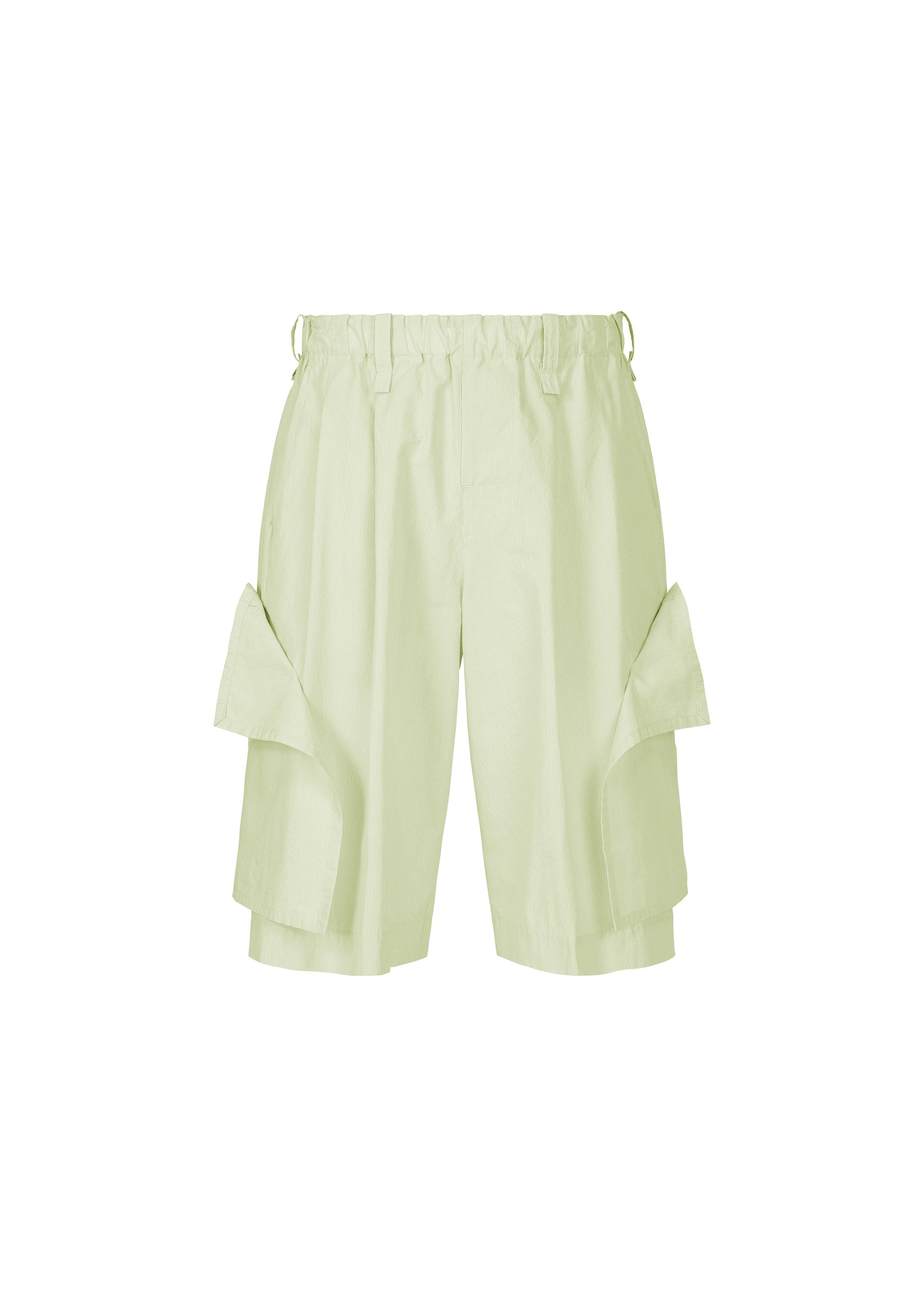 These shorts are characterized by their natural wrinkled look created through gradual washer processing applied to the fabric. The design features eye-catching large pockets on both sides. The shorts have an inner draw cord and a fly front design. Product Information Material: 68% cotton, 32% nylon Country of origin: Japan Waist specifications:Rubber/belt loop Front opening specification:Hiyoku (no fastener) Pocket (position):Both front and rear sides