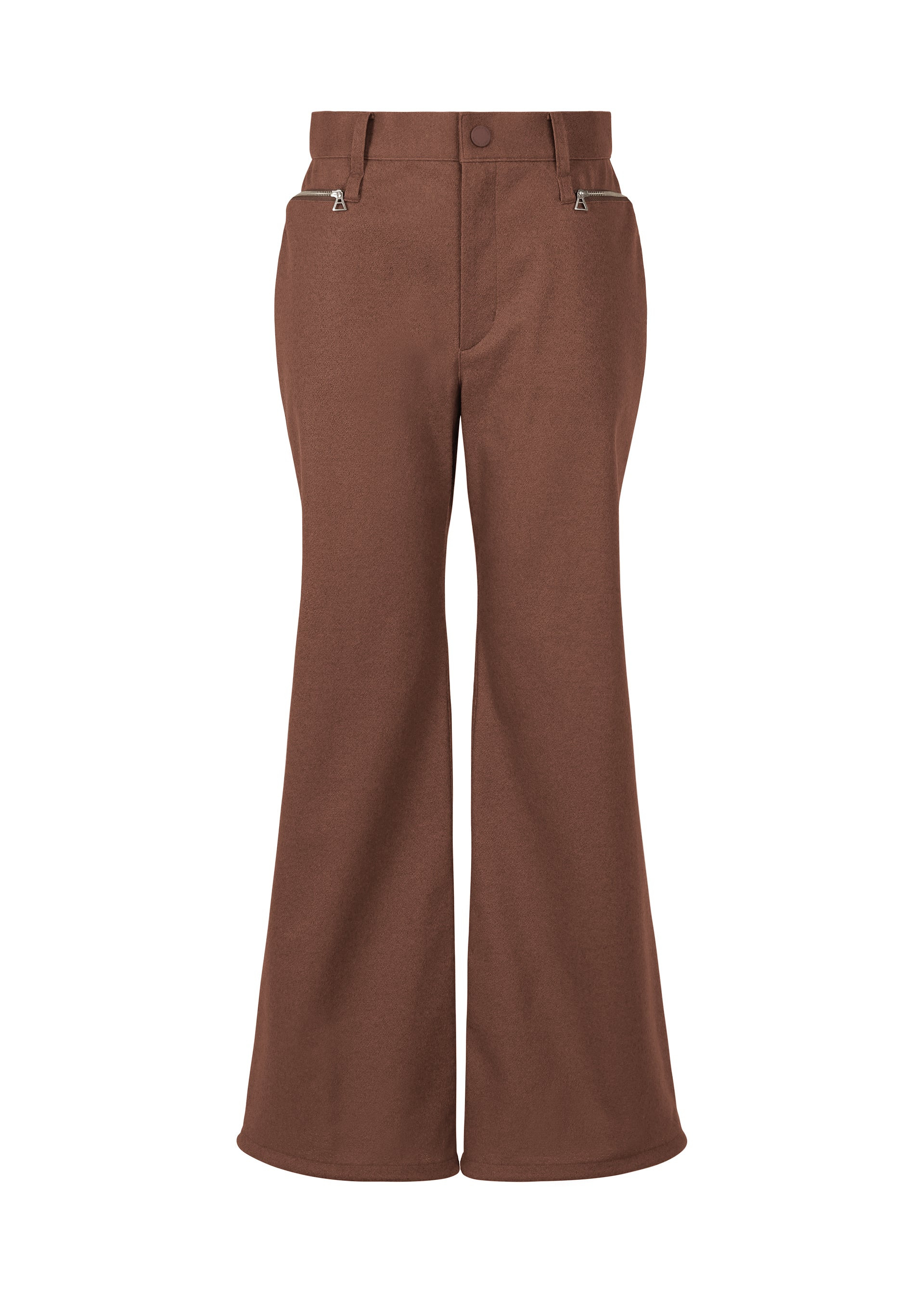 These pants are characterized by their form reminiscent of a garment bag. Featuring thick cords at the shoulders, yoke, and hem, the series features items with a form that gives the impression of wearing a garment bag. The highly expressive jersey fabric, made from a blend of polyester spun thread and wool thread, is fully resin-coated and pressed to add gloss and a taut feel. The lightweight, puffy material is deliberately processed to create a fabric with an entirely different look. Product Information Material: 80% polyester, 20% wool (polyurethane coating) Made in Japan Waist specifications:Buttons / Belt loops Front opening specification:Zip fly Pocket (position):Front and back, both sides others:Drawcord (hem)
