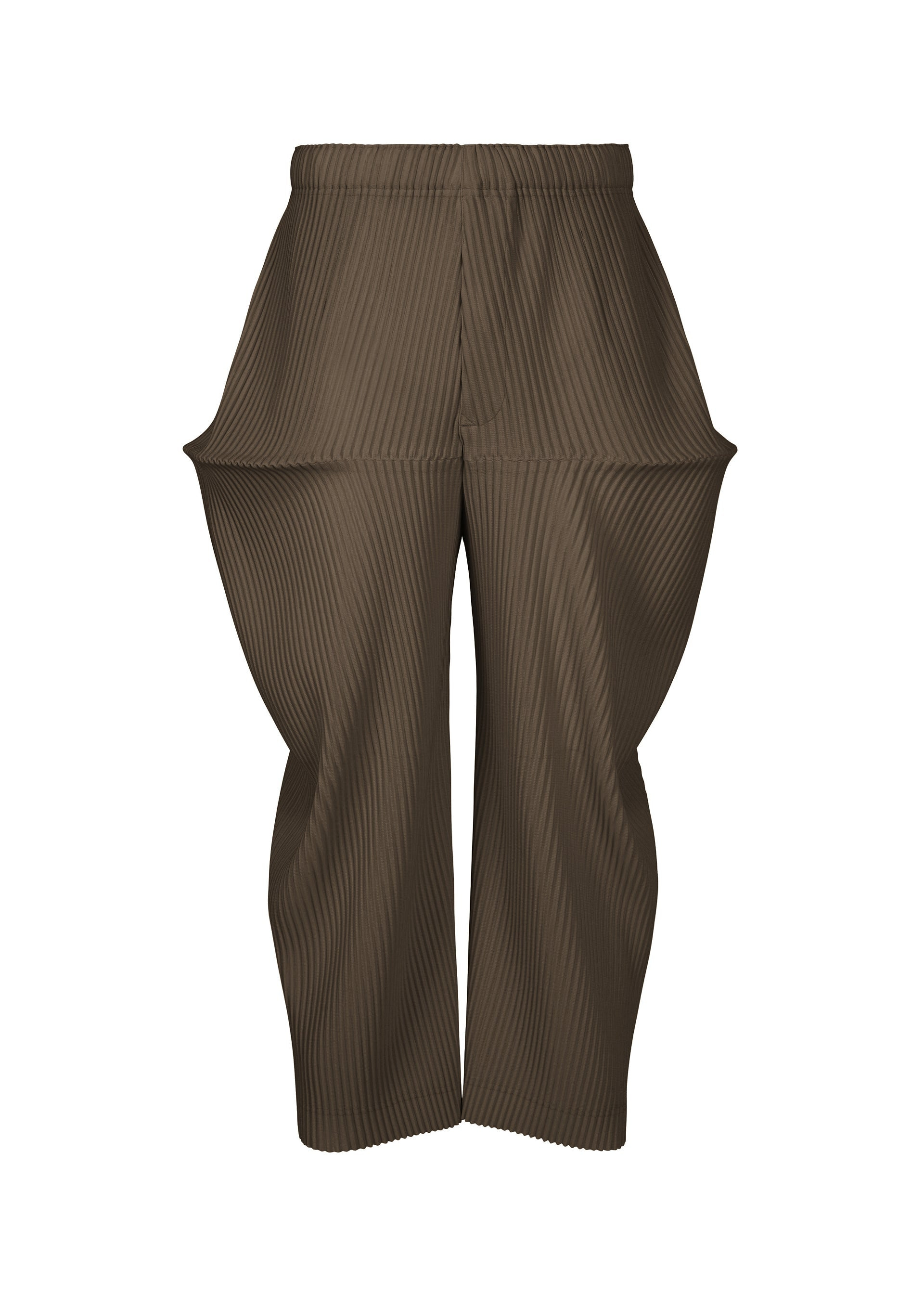 These pants are characterized by their three-dimensional form inspired by the geometric shapes of mobiles that move with the wind. They have a button-fly design. Product Information Material: 100% polyester Country of origin: Philippines Waist specifications:Rubber/Drawcord Front opening specification:button fly Pocket (position):both sides