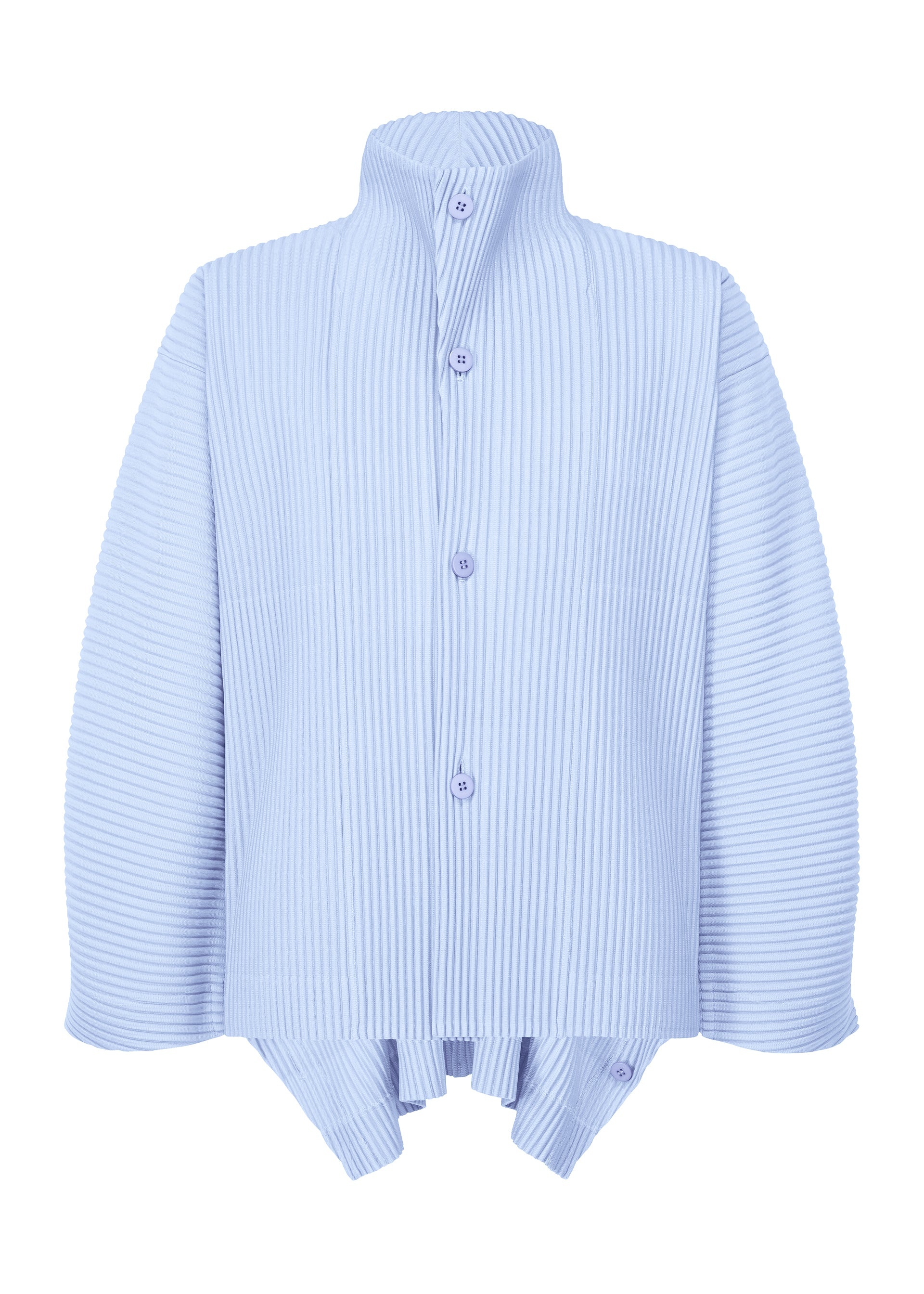 This jacket gives a light impression by applying the structure of kites to clothing. Its form, which looks like a kite flying in the sky, becomes three-dimensional as if the wearer has expanded it instead of the wind. It is made with ample fabric, and its silhouette can be changed depending on whether you close the buttons. It has pockets on both sides.