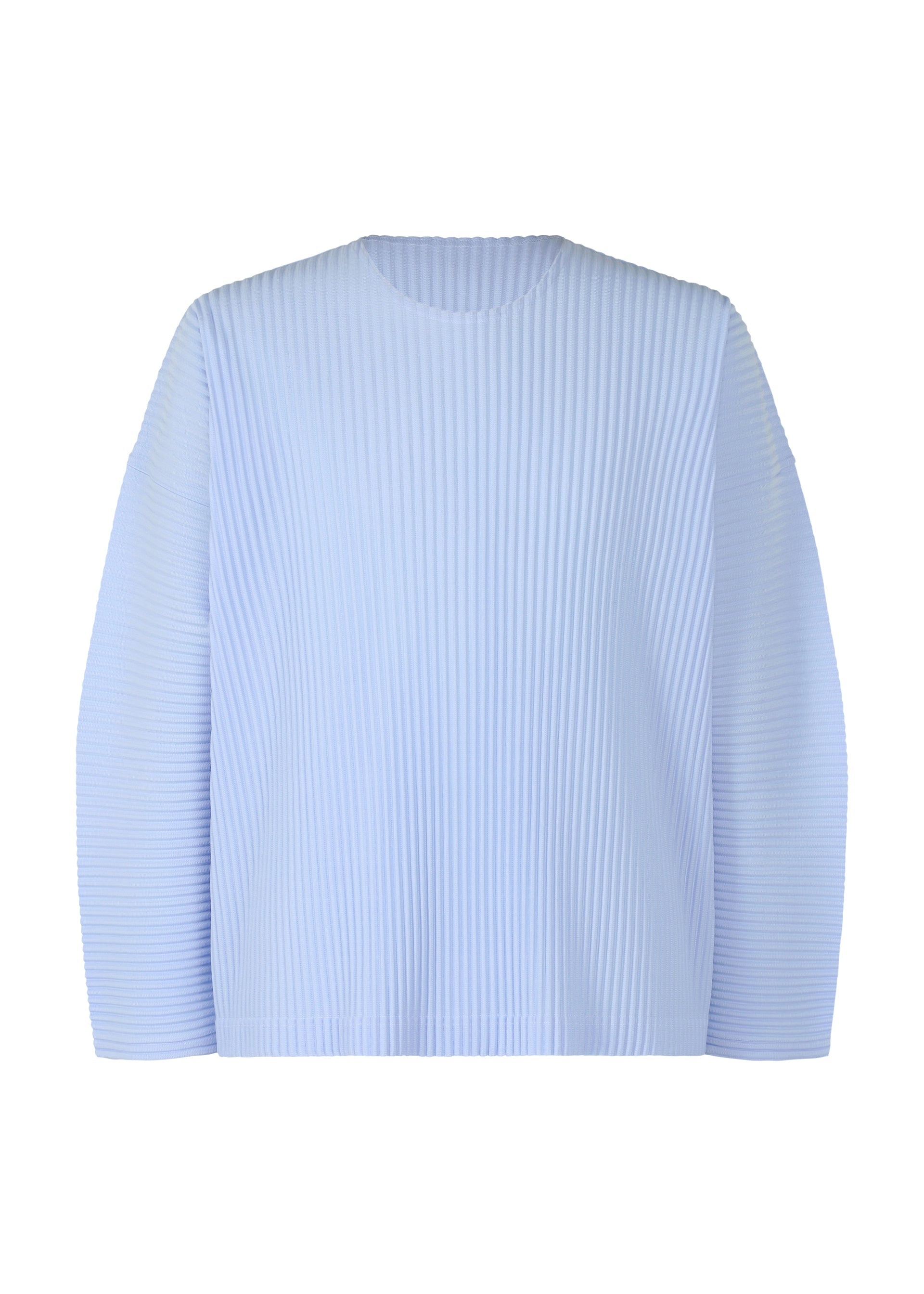 This round-neck, long-sleeved top is available in refreshing color tones. It is characterized by its portability and light comfort with the unique quick-drying property of polyester material. The sleeves feature horizontal pleats, giving the top a rounded, soft appearance.
