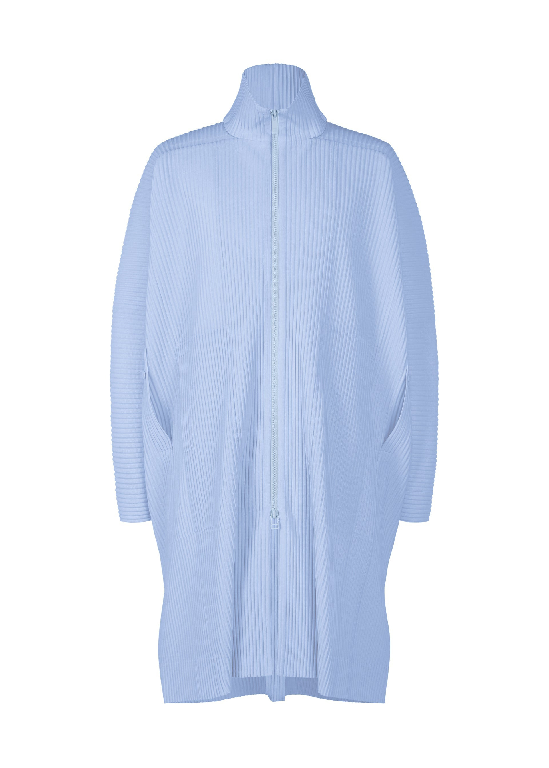 This coat is available in refreshing color tones. It is characterized by its portability and light comfort with the unique quick-drying property of polyester material. has pockets on both sides. When you wear it with your arms through the side slits next to the pockets, the sleeves flutter in the breeze, allowing you to feel the airflow. Product Information Material: 100% Polyester Lining: 100% Polyester Country Of Origin: Japan Neckline/Collar:High Neck Front Opening:Double Zip Pocket (Position):Both Sides Others:Collar Hanging