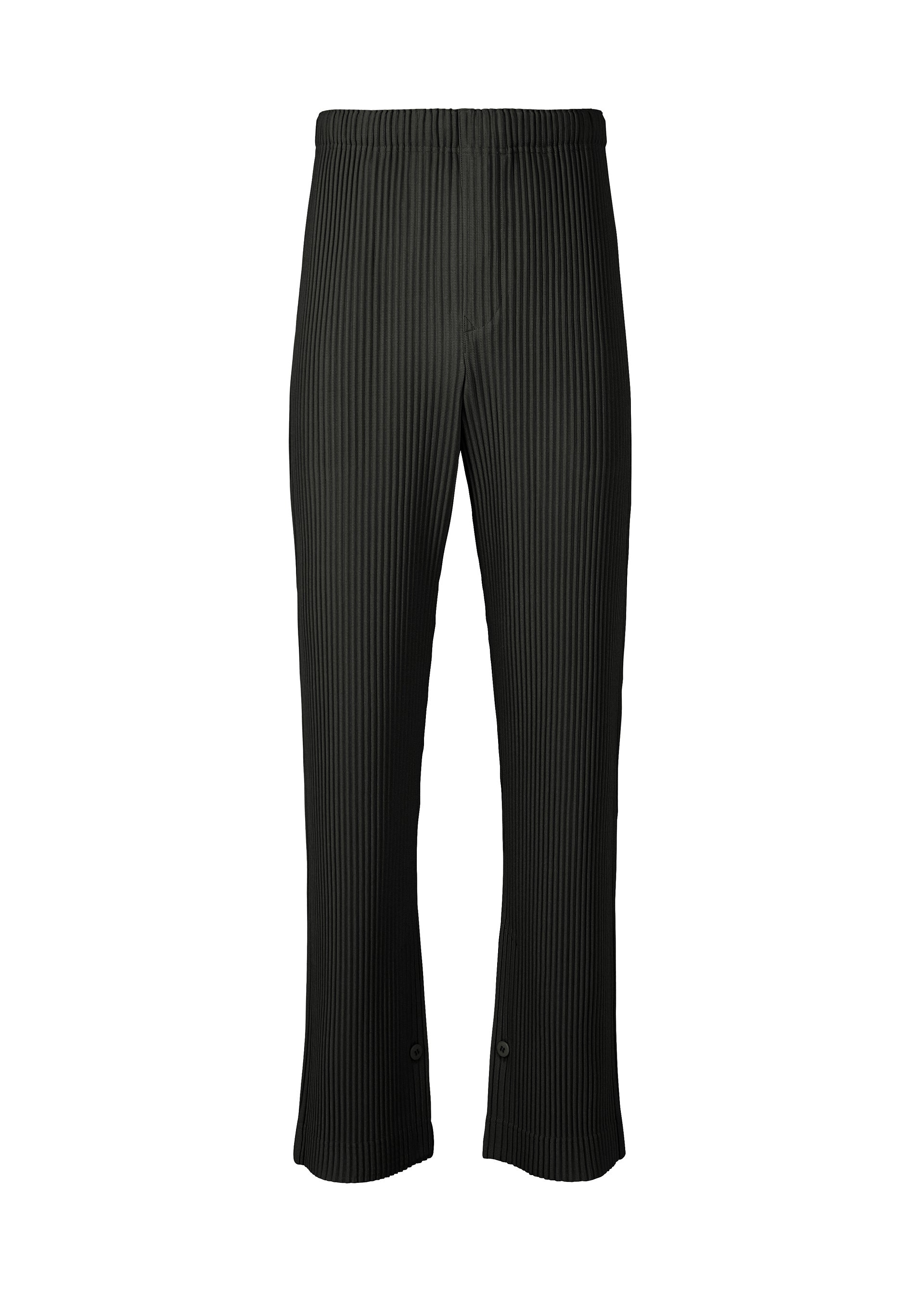 These straight pants are available in soft color tones. They are characterized by their portability and light comfort with the unique quick-drying property of polyester material. The inner slits at the hems give the impression of coolness. They have pockets on both sides and an inner draw cord. They have a button-fly design. Product Information Material: 100% polyester Made in Japan Waist Specifications:Elastic / Drawcord Front opening:Button fly Pocket (position):Both sides Slit (position):Inside other:Buttons (hem)