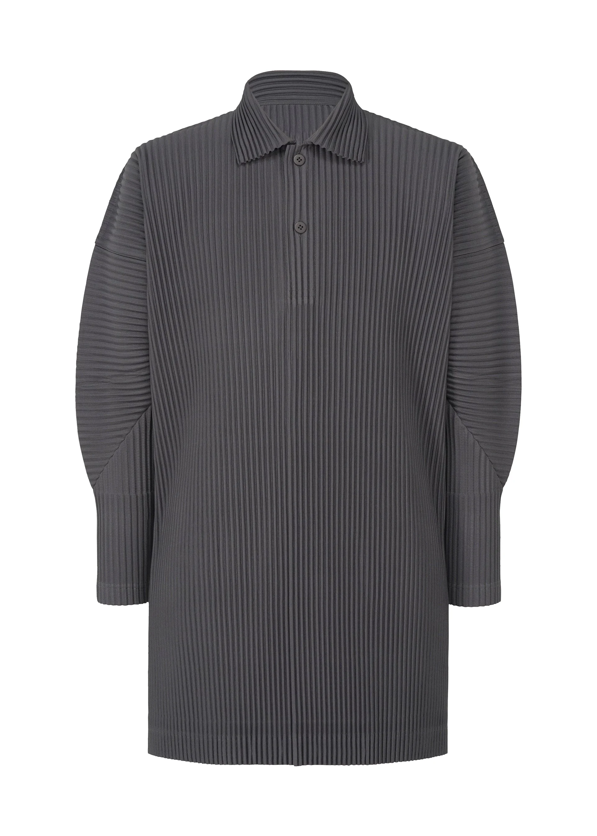 This long-sleeved polo shirt is available in gentle color tones. It is characterized by its portability and light comfort with the unique quick-drying property of polyester material. This item is simple yet has a presence due to its design with a long length. It has slits on both sides. Product Information Material: 100% polyester Made in Japan Neckline / Collar:With collar Front opening:Half button Slit (position):Both sides