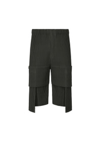 These shorts are characterized by their unique silhouette inspired by the way a pocket expands when a stone is placed inside. When items are placed in the pockets, the pleats expand, which changes the silhouette. The shorts have pockets on both sides and a draw cord at the waist. They have a button-fly design. Product Information Material: 100% polyester Made in the Philippines Waist specifications:Elastic / Drawcord Front opening specification:Button fly Pocket (position):Both sides