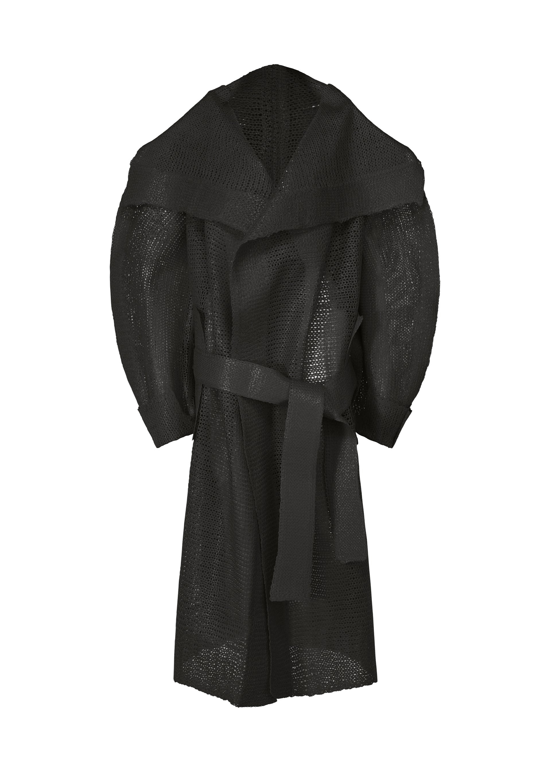 This long knit coat is characterized by its dynamic silhouette created through flat pressing. By pressing thermoplastic synthetic fibers with a wool and alpaca blend yarn, a crisp, rigid texture and subtle sheen not typically found in knitwear are achieved. Similar to sandwiching fillings in a panini, a mold is placed inside the garment during pressing, and the edges where nothing is sandwiched are firmly fused as the knit fabric meets. Due to the manufacturing process and characteristics of the material, the texture and fit vary from item to item. Please note this in advance. Product Information Material: 62% wool, 27% alpaca, 11% polyester. Made in Japan. Pocket (position):Both sides Vent (location):Center vent accessories:Belt made from the same fabric