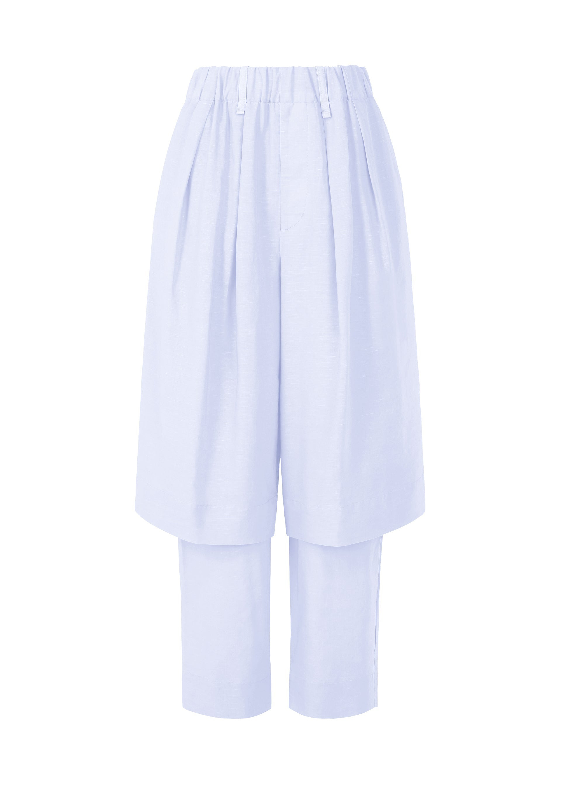 These pants are characterized by their taut yet comfortable texture and design with a layered look. They are made from thin cotton/linen shirt fabric with a rich slub texture. The fabric undergoes low-temperature mercerization processing once to enhance its firmness, tautness, and crispness. By slowly garment-dyeing the pants at a low temperature after sewing, the taut fabric takes on a soft texture akin to crumpled paper, with a comfortable feel against the skin. Product Information Material: 60% cotton, 40% linen Country of origin: Japan