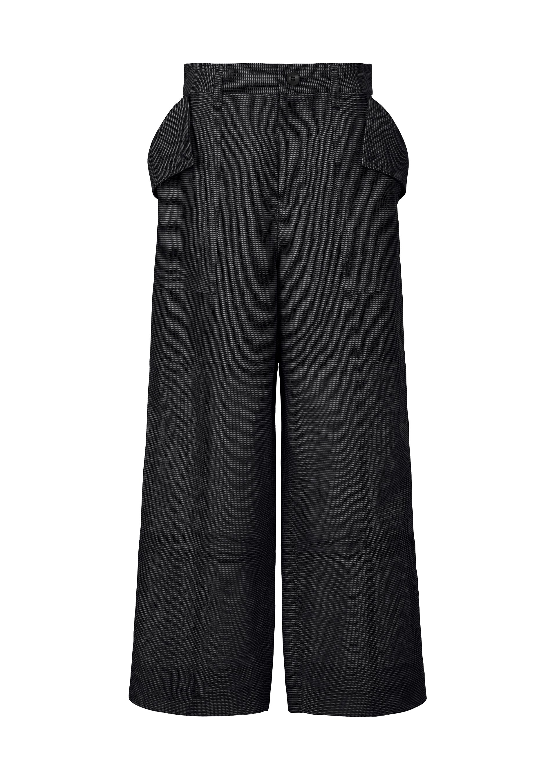 These straight pants are made from fabric with a unique texture, inspired by paper in ancient times made from the papyrus plant. The fabric is woven by intertwining thick cotton, ramie, and Japanese Washi paper threads, each dyed in subtly different tones, creating a moderate sheerness and rich color depth. They are characterized by their grid-like tape design that makes you sense a framework. The tape is applied to follow the body’s lines and functions as buttonholes. Product Information Material: Unclassified fiber (Japanese paper) 45% Ramie 38% Cotton 17% Tape: 100% cotton Lining: Unclassified fiber (Japanese paper) 45% Ramie 38% Cotton 17% Country of origin: Japan Waist specifications:button/belt loop Front opening specification:zip fly Pocket (position):Both front and rear sides