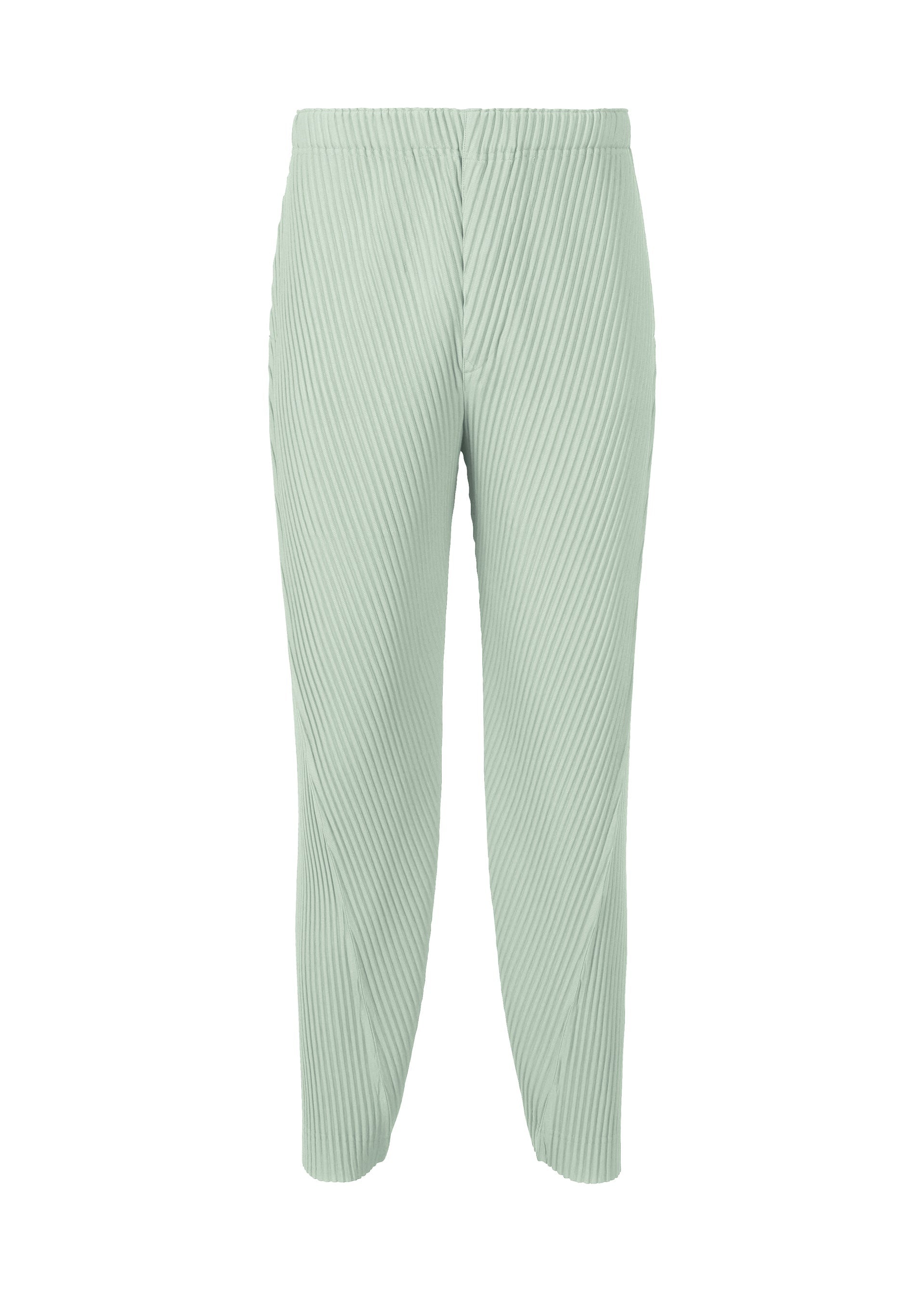 These pants are available in clear color tones. They are characterized by their pleat lines that appear to be twisted. They have pockets on both sides and an inner draw cord. They have a button-fly design. Product Information Material: 100% polyester Country of origin: Philippines Waist specifications:Rubber/Drawcord Front opening specification:button fly Pocket (position):both sides