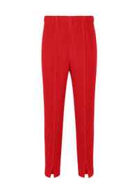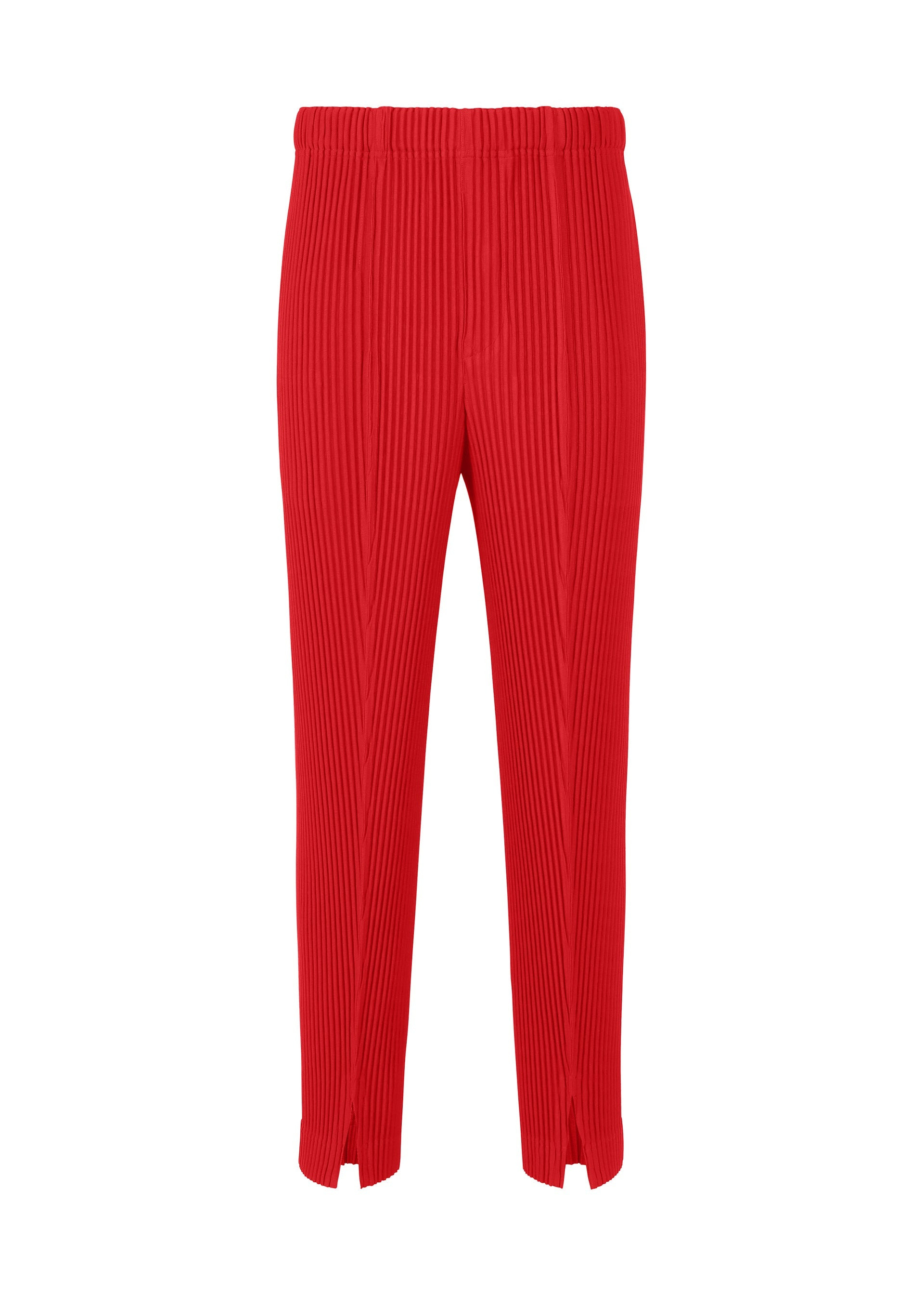 These straight pants are available in clear color tones. They have pockets on both sides, front slits, and an inner draw cord. They have a button-fly design. Product Information Material: 100% polyester Country of origin: Philippines Waist specifications:Rubber/Drawcord Front opening specification:button fly Pocket (position):both sides Slit (position):front