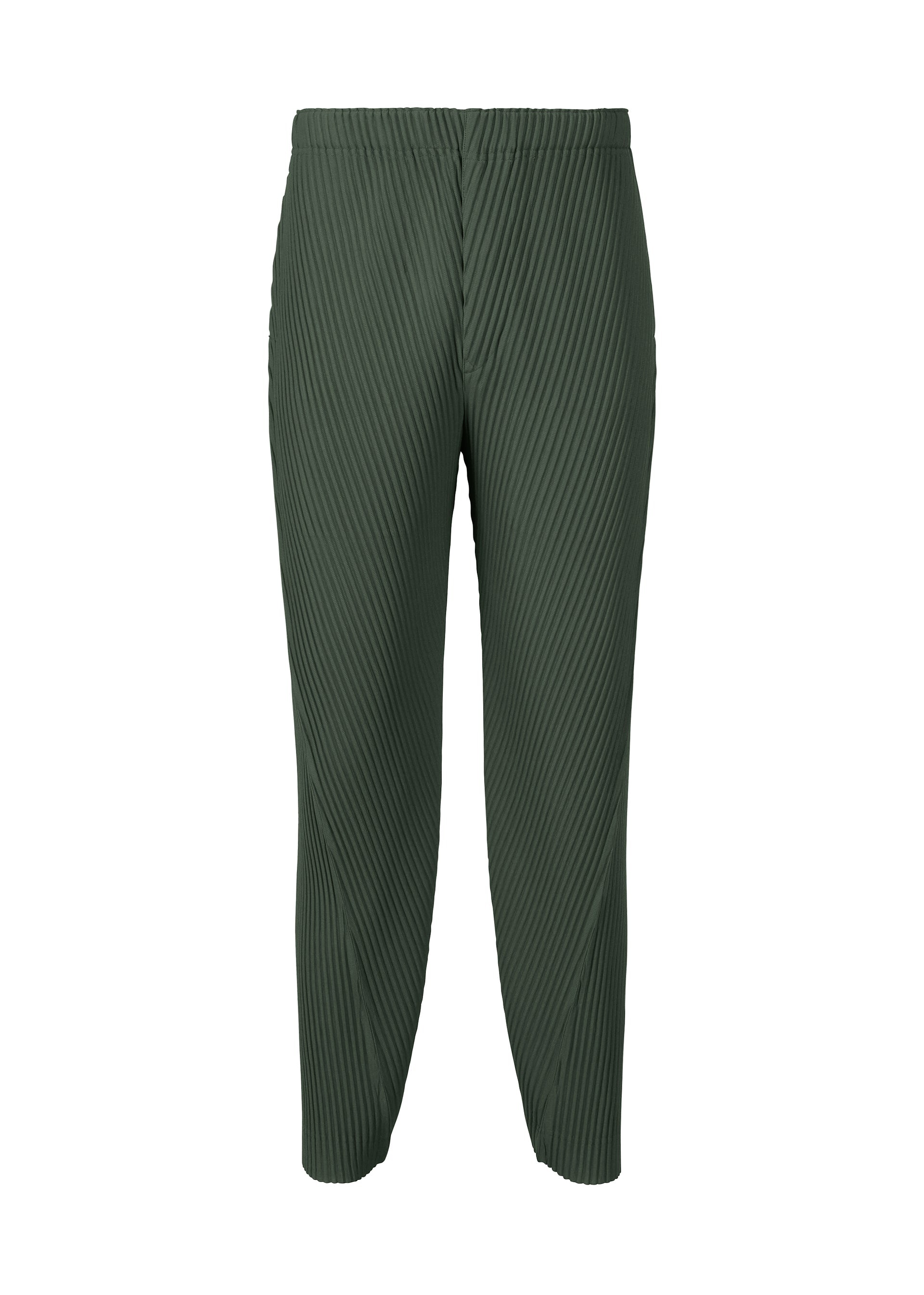 These pants are available in clear color tones. They are characterized by their pleat lines that appear to be twisted. They have pockets on both sides and an inner draw cord. They have a button-fly design. Product Information Material: 100% polyester Country of origin: Philippines Waist specifications:Rubber/Drawcord Front opening specification:button fly Pocket (position):both sides