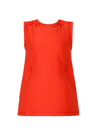 This round-neck, sleeveless tunic features inner padding. The unique, billowing form and soft, comfortable feel are achieved by inserting a sheet of padding between layers of ultra-high-density (46-gauge) stretch jersey material. While maintaining a basic silhouette, the added padding gives the tunic a distinctive presence. Product Information Material: 90% nylon, 10% polyurethane Lining: 90% nylon, 10% polyurethane Filling: 100% polyester Made in Japan Neckline / Collar:crew neck others:Buttons (both shoulders)