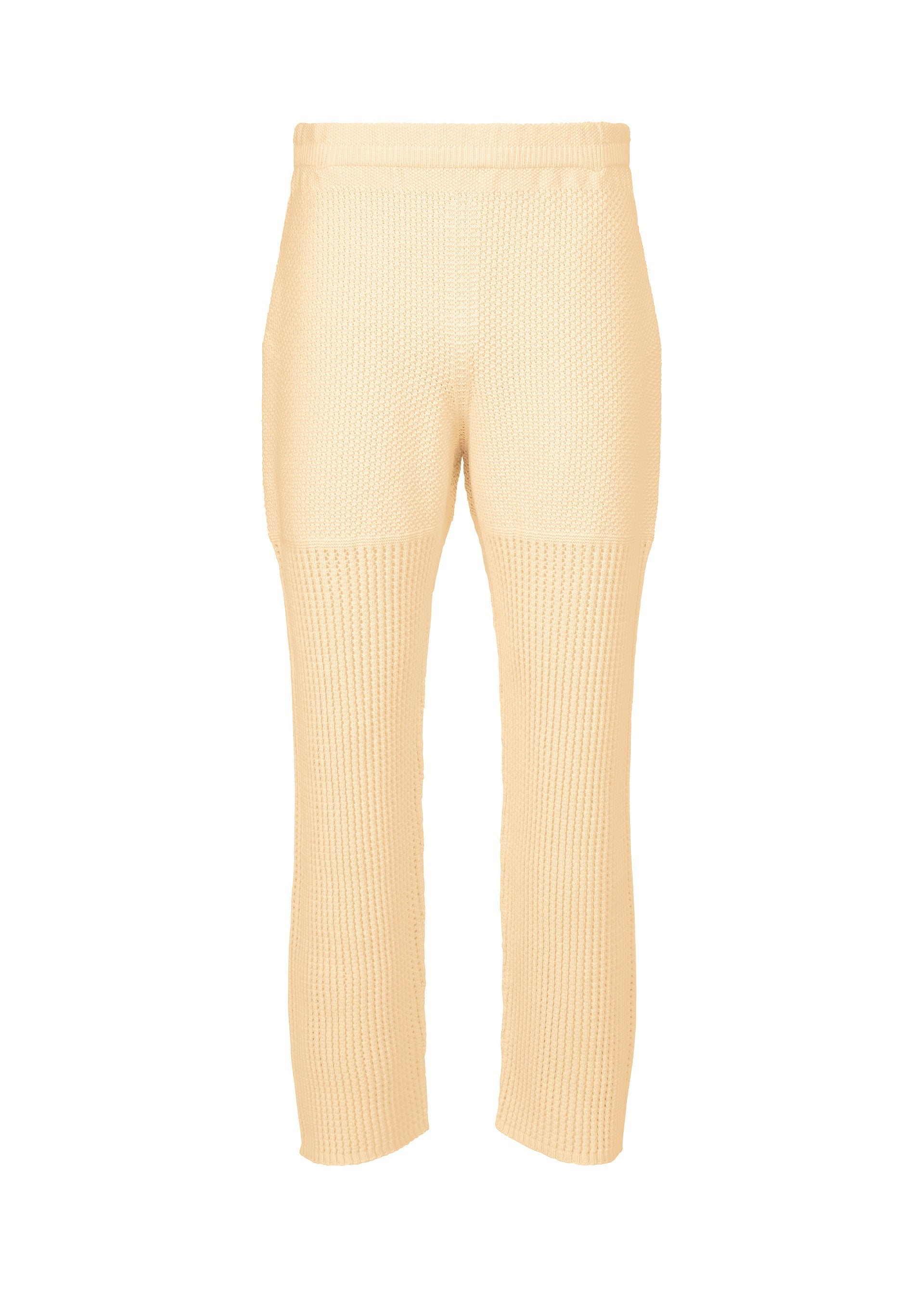 Made from a blend of cotton and polyester, RUSTIC KNIT is a seamless knit series with varying textures. These pants have a relaxed, tapered cut with a ribbed detail from the knee to the ankle. They include a drawcord waistband and two side pockets. Product Information Material: 63% polyester, 37% cotton Country of origin: Japan