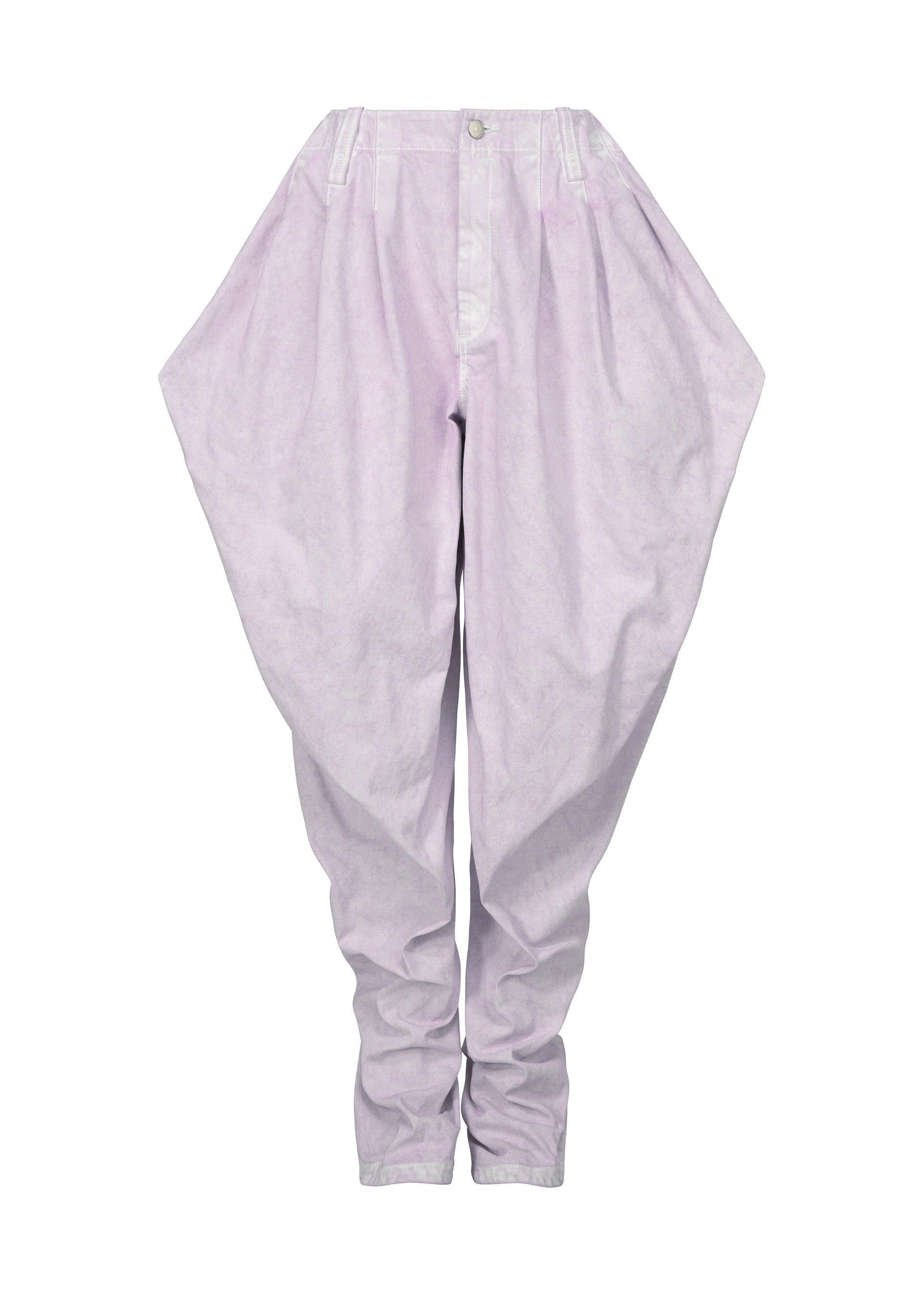These pants are characterized by their sculpture-like texture and substantial fabric feel. A high-density twill fabric is coated with white pigment, which is then partially removed to reveal the base fabric color, resulting in a unique plaster-like texture. The way the pigment comes off varies between individual pieces, giving each one a different appearance. Due to the manufacturing process, the material texture varies from item to item. Please note this in advance. Product Information Material: 100% cotton Made in Japan Waist Specifications:Buttons / Belt Loops Front Opening:Zip Fly Pocket (Position):Front And Back Sides