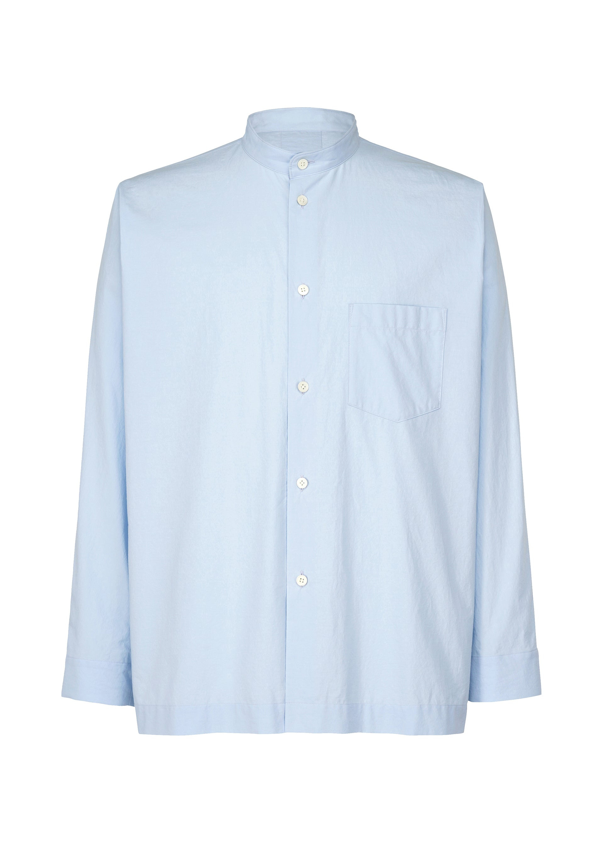 100% cotton stand collar shirt. It is characterized by its delicate and natural texture. There is a pocket on the left chest and slits on both sides. Product Information Material: 100% cotton Country of origin: Philippines neckline/collar:stand collar Front opening:button Pocket (position):left chest Slit (position):both sides