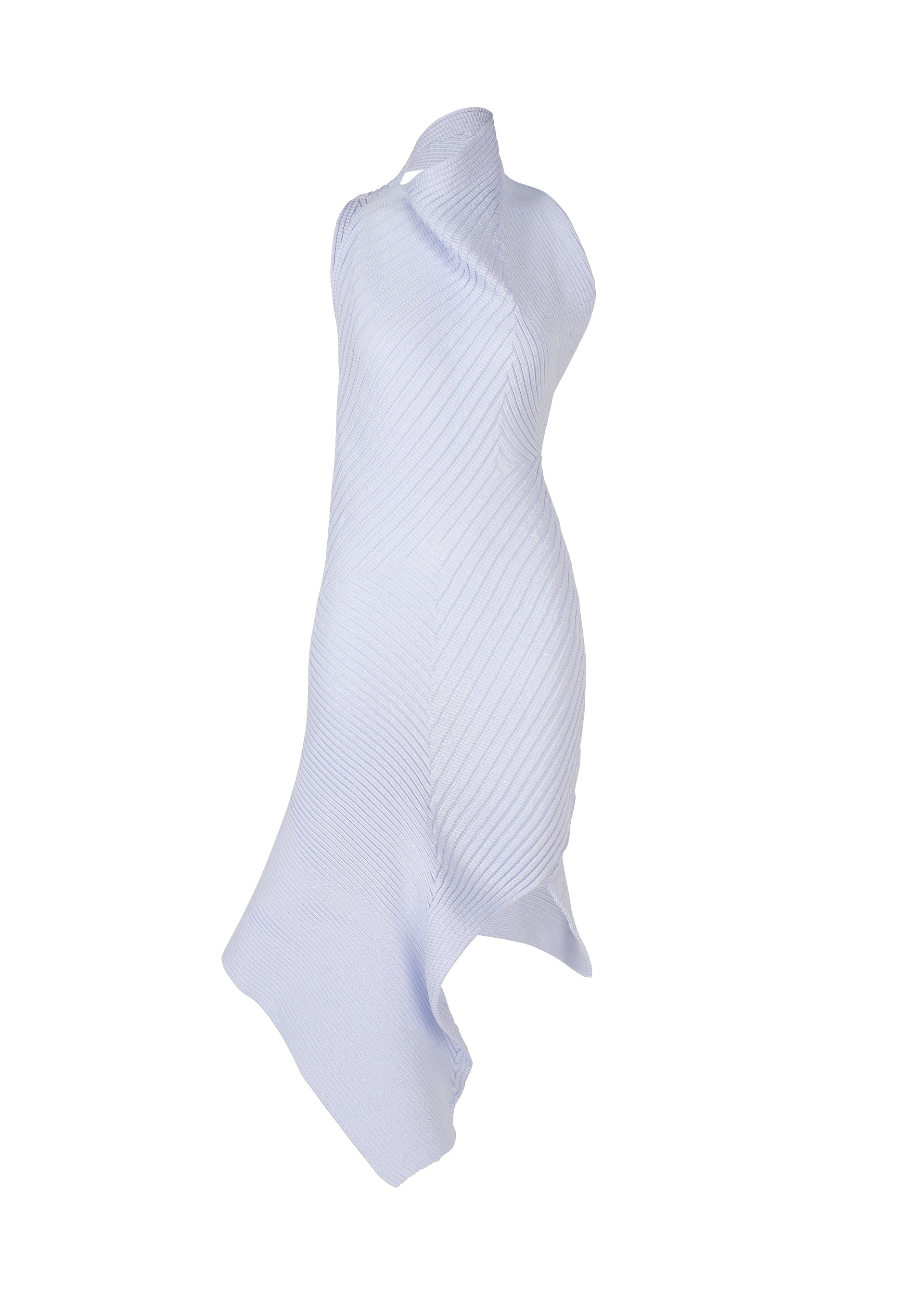 This knit dress is characterized by its structure resembling drooping quadrilateral paper and light, comfortable feel. It is knitted using highly stretchy recycled polyester thread combined with delicate, glossy triacetate thread in a striped pattern. Quadrilateral parts, created by blending garter and rib knitting techniques, are assembled with minimal sewing to achieve a soft form. Product Information Material: 58% polyester, 42% triacetate Country of origin: Japan neckline/collar:halter neck