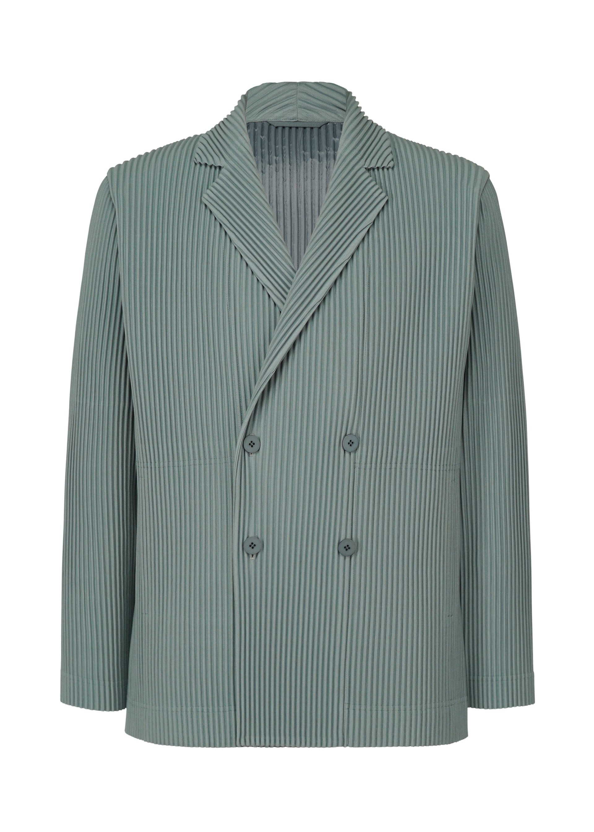 This double-breasted jacket has a simple design. It is characterized by its portability with the unique quick-drying property of polyester material. The elegant design features side vents so that the jacket flows with body movements and the breeze. It can be worn in a wide range of situations, from formal to casual. It has pockets on both sides and inner pockets. Product Information Material: 100% Polyester, Lining: 100% Polyester Made in the Philippines Neckline / Collar:Tailored collar Front opening:button Pocket (position):Both sides Vent (location):Side vents others:Inner pockets (both chests) Collar strap