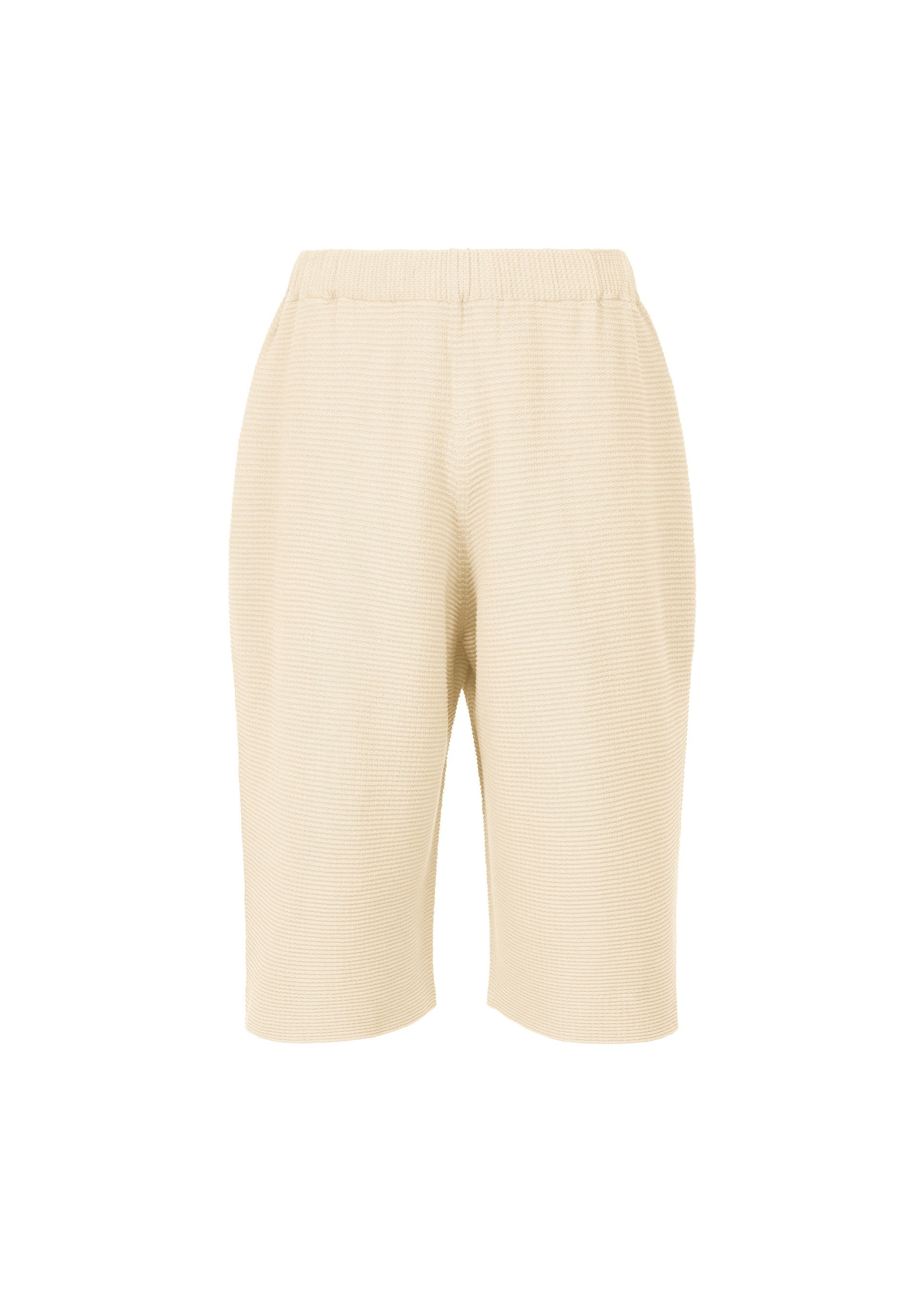 These knit shorts are made from organic cotton with a refreshing texture. They are characterized by their relaxed silhouette. They have pockets and slits on both sides and an inner draw cord. Product Information Material: 100% cotton Country of origin: Japan Waist specifications:Rubber/Drawcord Pocket (position):both sides Slit (position):both sides