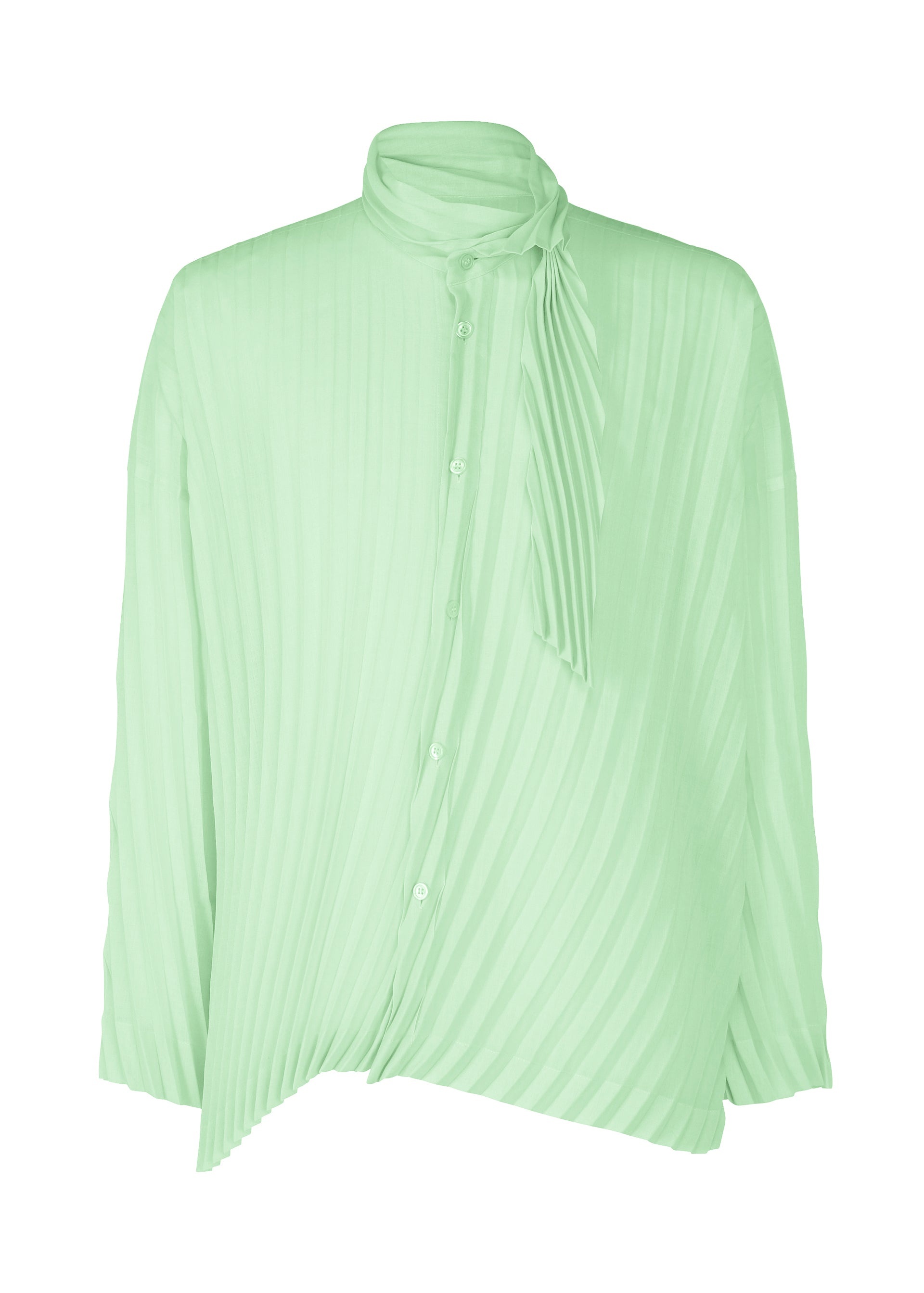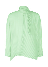 This long-sleeved shirt expresses the look of things fluttering in the wind with its series of curved handmade pleats applied to a simple pattern. The front slit is designed to allow the tie part to pass through, giving the impression of air flowing through. There are also slits on both sides. Due to the nature of the material, this product may have horizontal creases on the curved lines of the pleats. Please note this in advance. Product Information Material: 90% polyester, 10% wool Country of origin: Philippines Front opening:button Slit (position):both sides