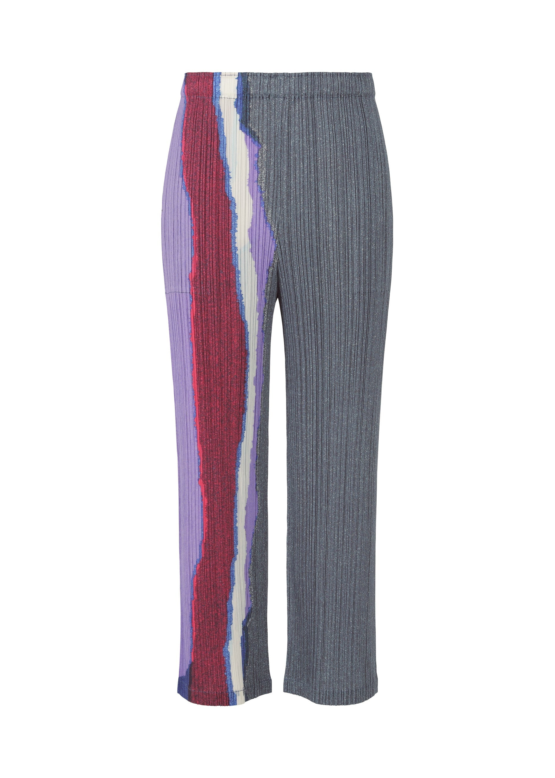 These straight pants are from a series that uses stencil printing to express a cut-and-pasted pattern of colored paper while preserving the graininess of the colors and misalignment of the print. They have pockets on both sides. Product Information Material: 100% polyester Country of origin: Japan Waist specifications:rubber Pocket (position):both sides
