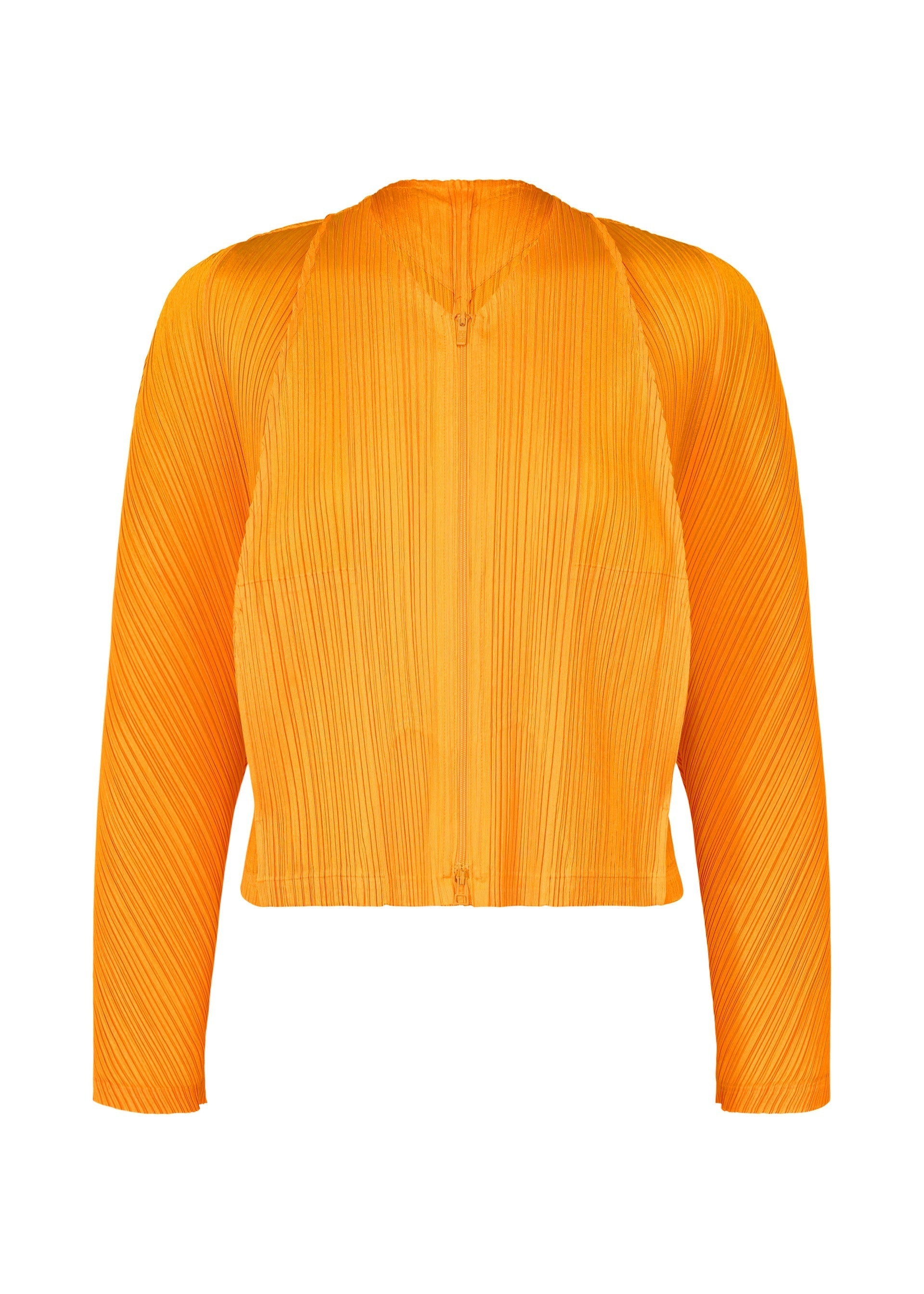This jacket is inspired by the warm light of a lantern that envelops its surroundings. It is characterized by its rounded sleeves and the contrast created by the sharp lines that run from the shoulders to the hem. It has a zippered style and pockets on both sides.