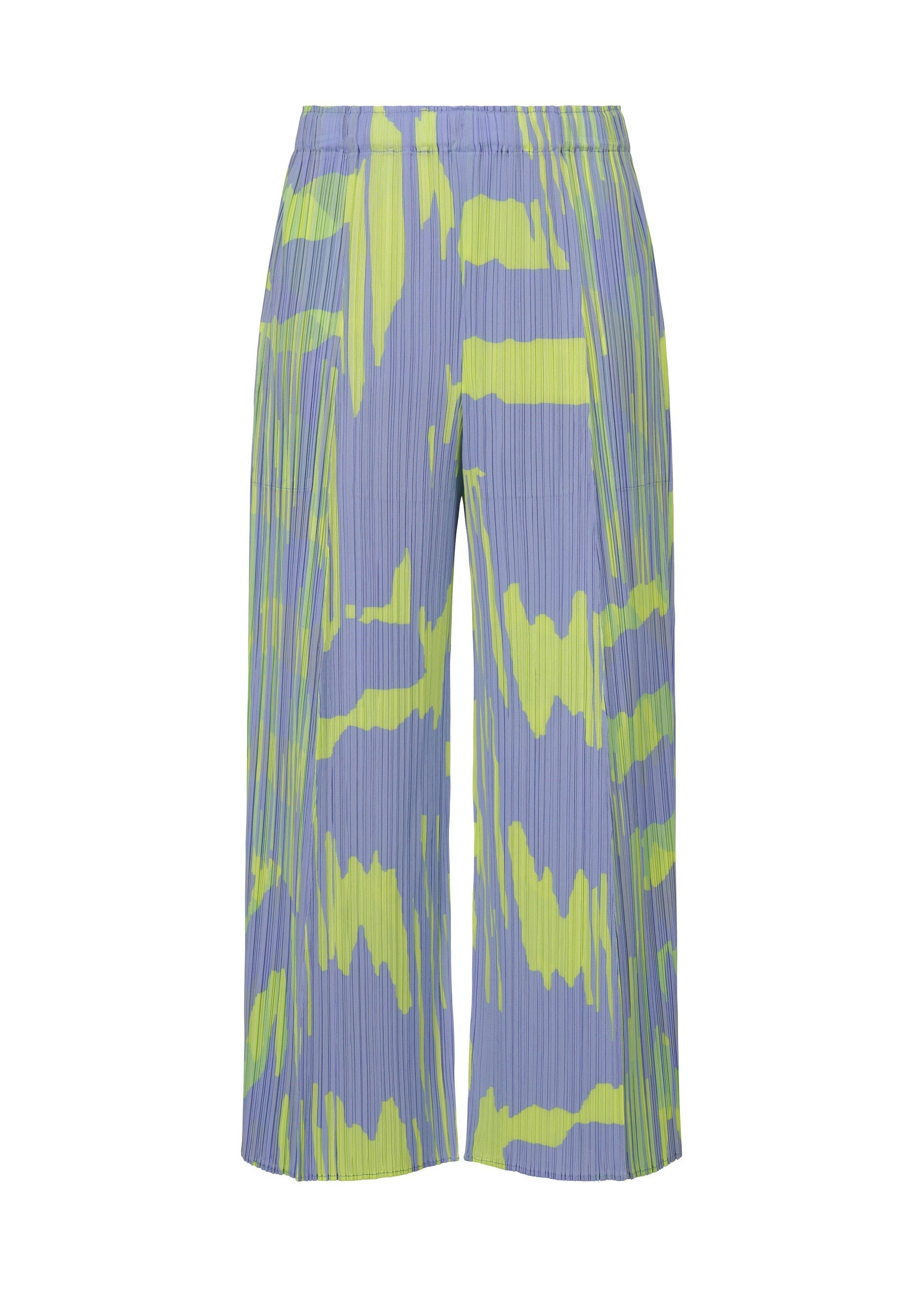 These flared pants feature printed lines reminiscent of light refraction on the surface of water. They have pockets on both sides. Product Information Material: 100% polyester Country of origin: Japan Waist specifications:rubber Pocket (position):both sides