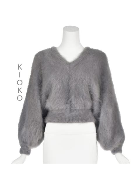 KIOKO Gray Waist Length V-Neck French Angora Sweater with Dolman Sleeves S/M