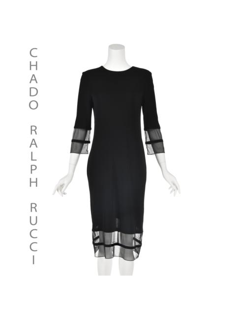 CHADO RALPH RUCCI Vintage Black Jersey Midi Dress Dress with Sheer Hem & Sleeves