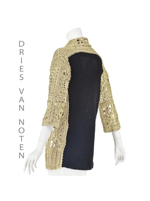 DRIES VAN NOTEN Gold Crocheted Ribbon Granny Chic Cardigan w Black Knit Back