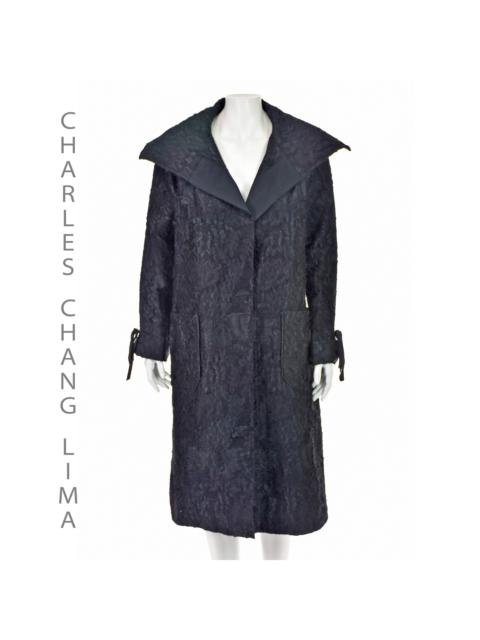 CHARLES CHANG LIMA Vintage Black & Green Inverted Brocade Open Coat NWT