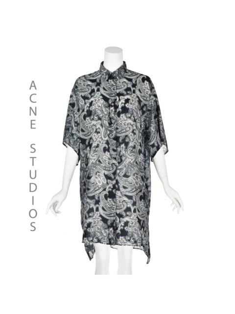 ACNE STUDIOS Oversized Navy Blue with Grey Paisley Print Shirt Dress NWOT