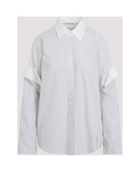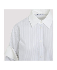 Acne Studios Olive Green Cotton Blouse. Pure olive green cotton blouse, contrasting white pointed collar, front buttoned fastening, long sleeves, white details on the sleeves, ribbed cuffs, round hem. Made in: China Color: Dif Olive Green Model number: AC0727DIF