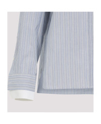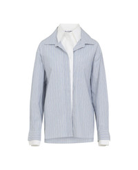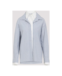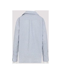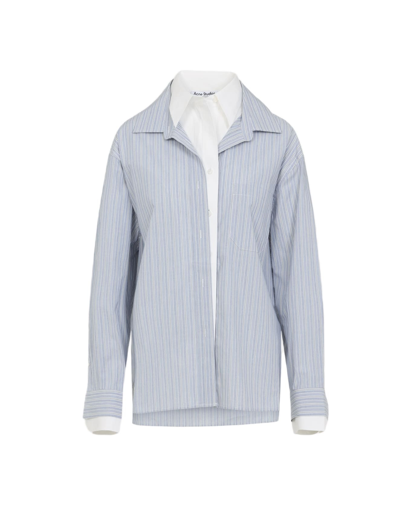 Acne Studios Blue Cotton Blouse. Pure cotton blouse, double-layers design, pointed collar, front buttoned fastening, dropped shoulders, long sleeves, buttoned cuffs, asymmetric hem. Contrasting white underlayer and a striped blue and white top layer. Made in: China Color: Blue White Model number: AC0769AF2