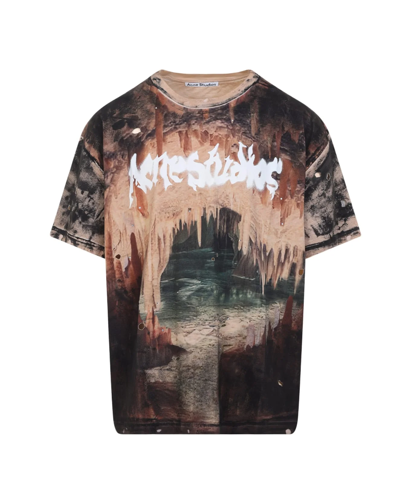 Acne Studios Black Cotton T-shirt. Crafted from cotton jersey, featuring an all-over graphic print, a round neckline, a logo on the front, dropped shoulders, short sleeves, and a relaxed fit. Made in: Italy Color: Black Rust Brown Model number: BL0434DL8