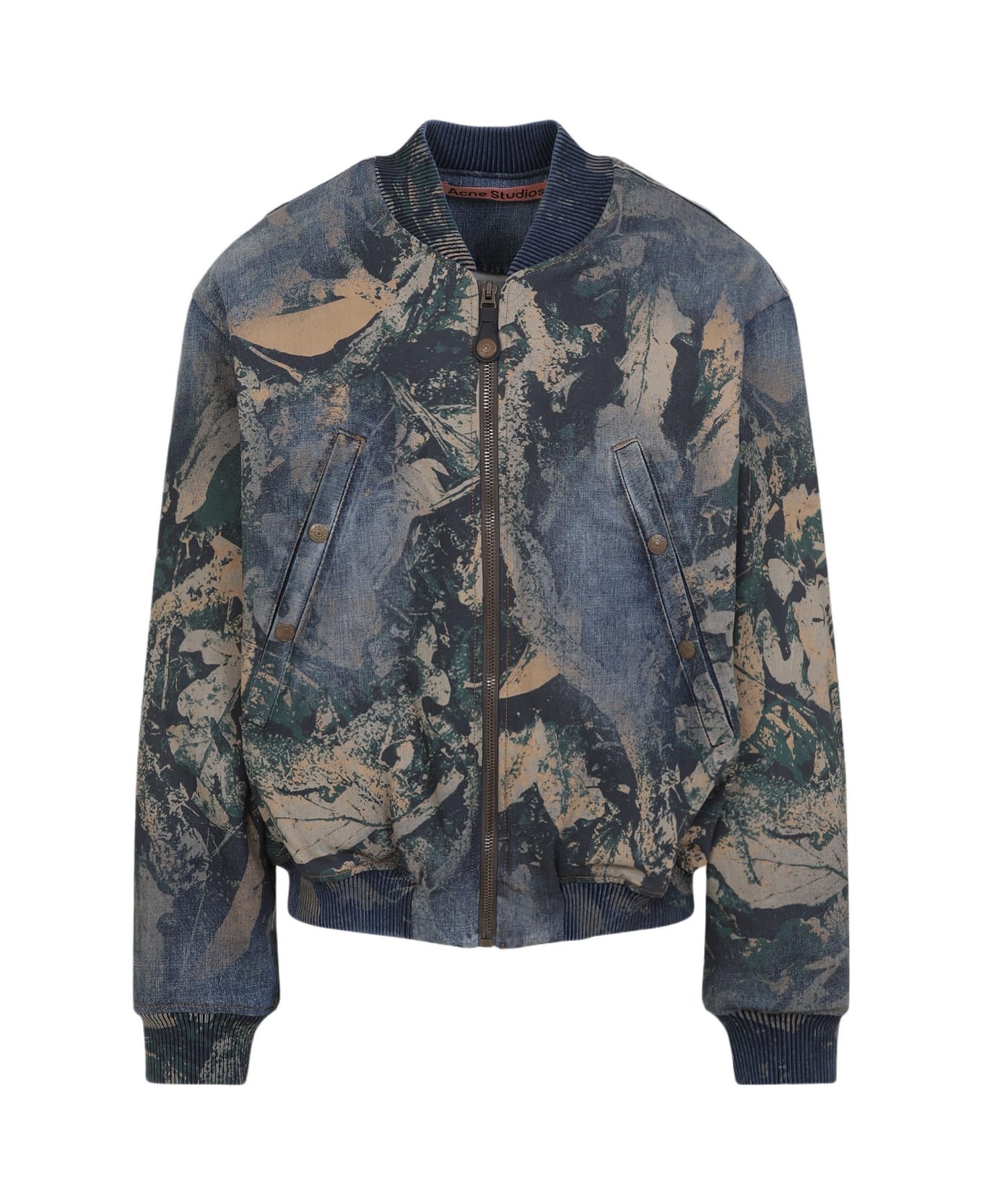 Denim Bomb Jacket With Camo Details