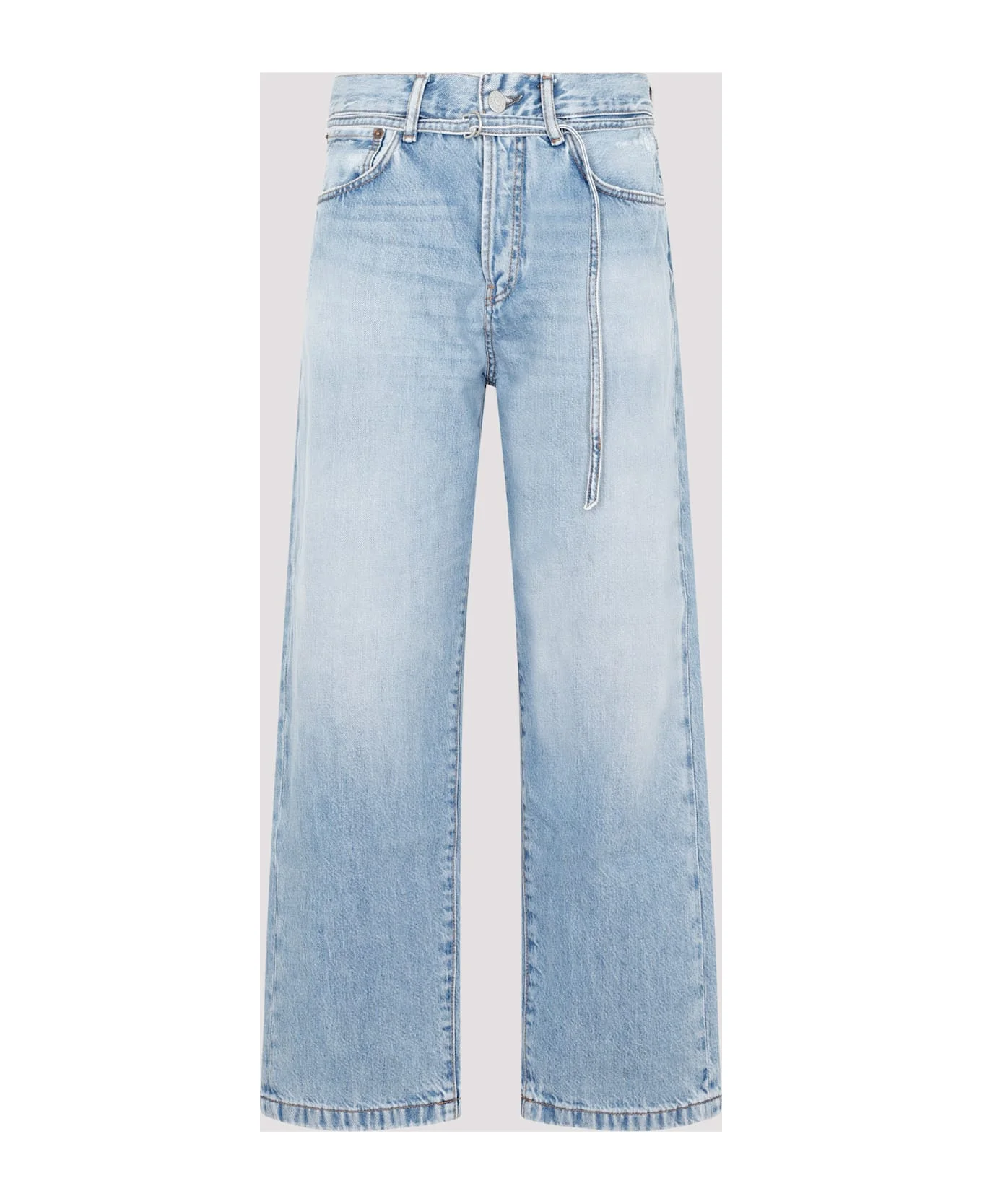 Acne Studios Blue Loose Fit Jeans 1991 Toj. Crafted in pure light blue cotton denim. Mid waist, adjustable D-ring belt, front concealed fastening with visible button, loose fit, belt loops, straight leg, regular length, five-pocket construction, straight hem. Made in: Italy Color: Light Blue Model number: C00039228