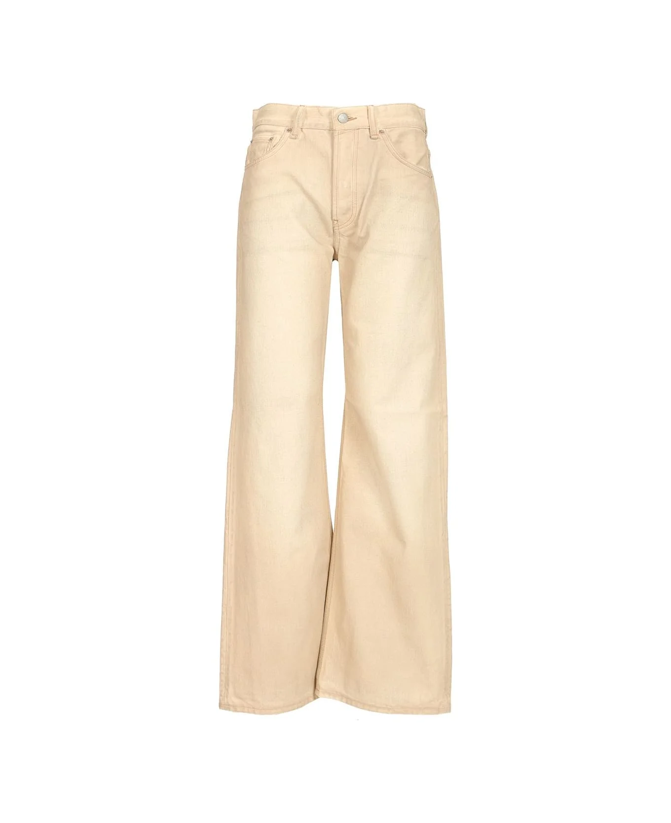 Wide leg denim jeans by Acne Studios Composition: Shell: 80% Cotton, 20% Recycled cotton, Patch: 100% Cow leather Made in: Italy Color: Beige Model number: A00546AE0