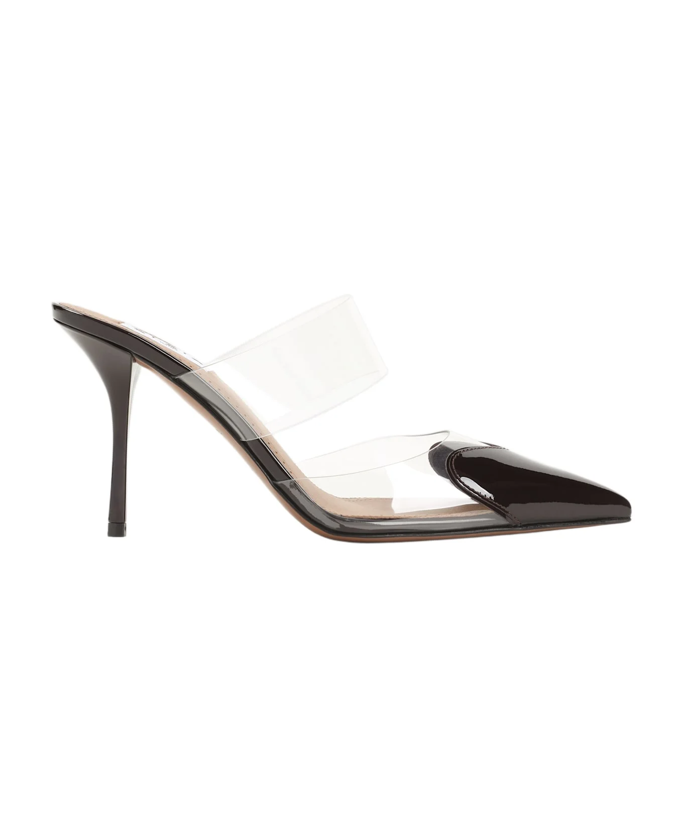 Alaia Aubergine Coeur Mules. Bi-material in leather and PVC upper, pointed toeline with heart on front, new shaped heels, lightly cushioned insole. Made in: Italy Color: Aubergine Size and fit: - Heel Height: 9cm Model number: AA3M053CK150413