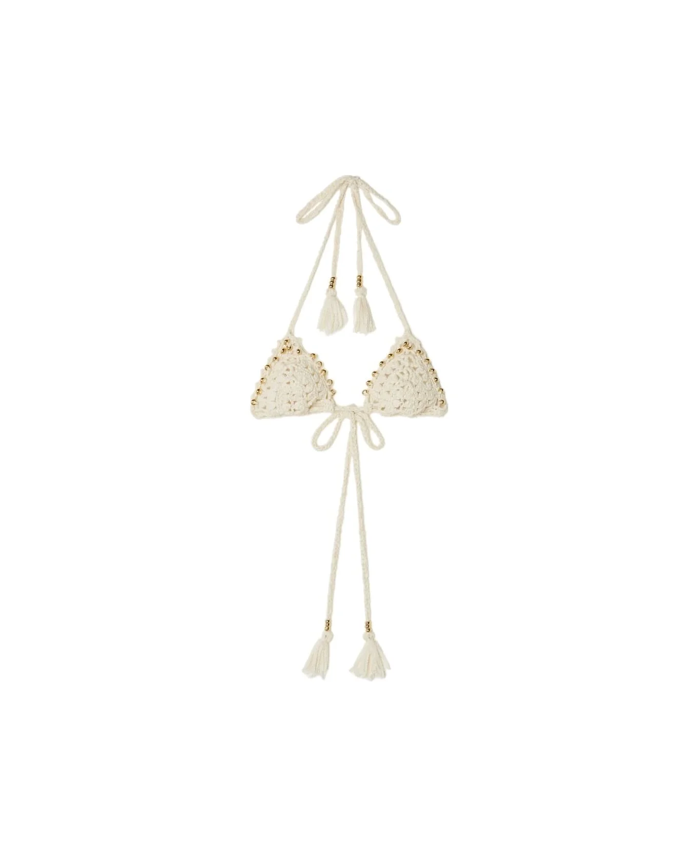 light beige halterneck tie fastening rear tie fastening bead embellishment Be mindful to try on swimwear over your own garments. Made in: Italy Color: NEUTRALS Model number: LWAE004R25KNI001